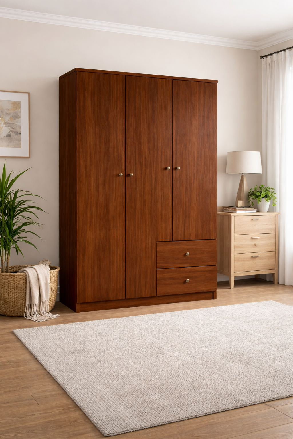armoire combinaison bois clair et blanc portes doubles tiroirs bas rangement interieur design simple